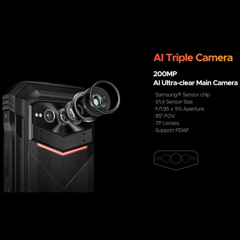 1. Cámara trasera: cámara principal de 200 MP (sensor S5KHP3SP, F1.95, campo de visión de 85 grados, PDAF) + cámara de visión nocturna de 20 MP (IMX350, F1.8, campo de visión de 79 grados)