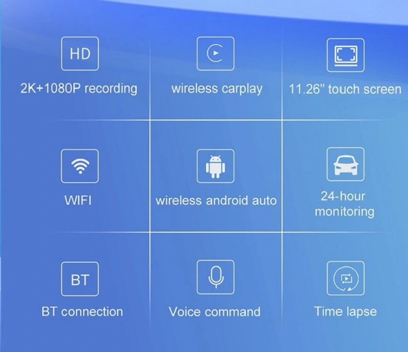 Caméra de rétroviseur FOXDAK CP06 avant 2K arrière 1080P 11,26" Carplay Android Auto