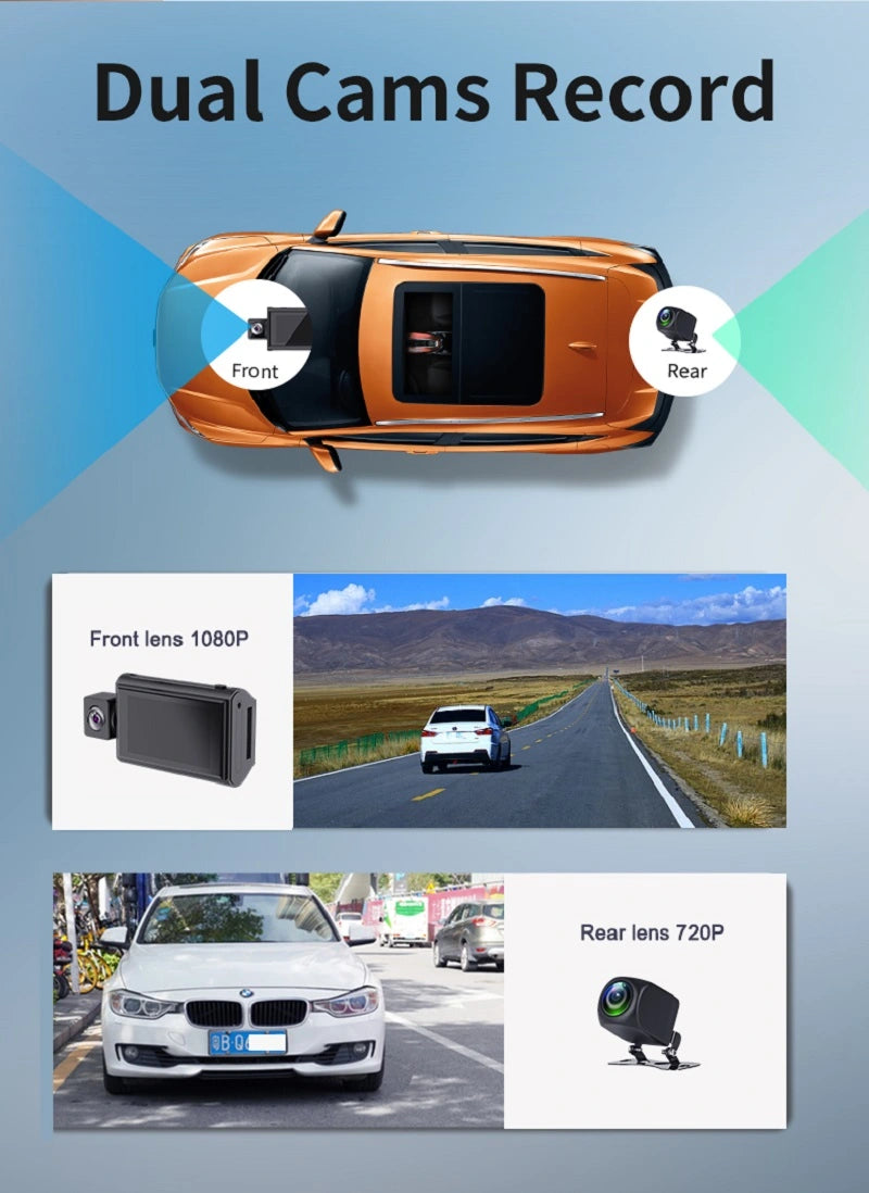 Caméra de tableau de bord FOXDAK G3 32 Go ROM double objectif 3" 1080P 4G WiFi GPS