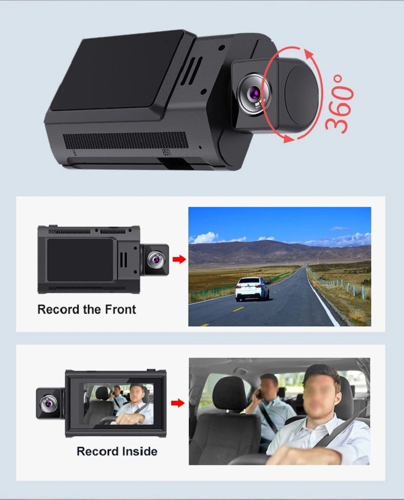 13. La caméra frontale pivote à 270 degrés pour enregistrer à l'intérieur voiture.