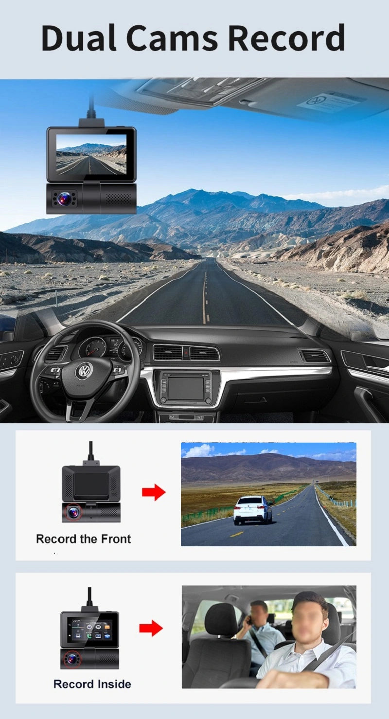 Caméra de tableau de bord FOXDAK G5 3" 32G ROM double objectif 1080P 4G WiFi GPS