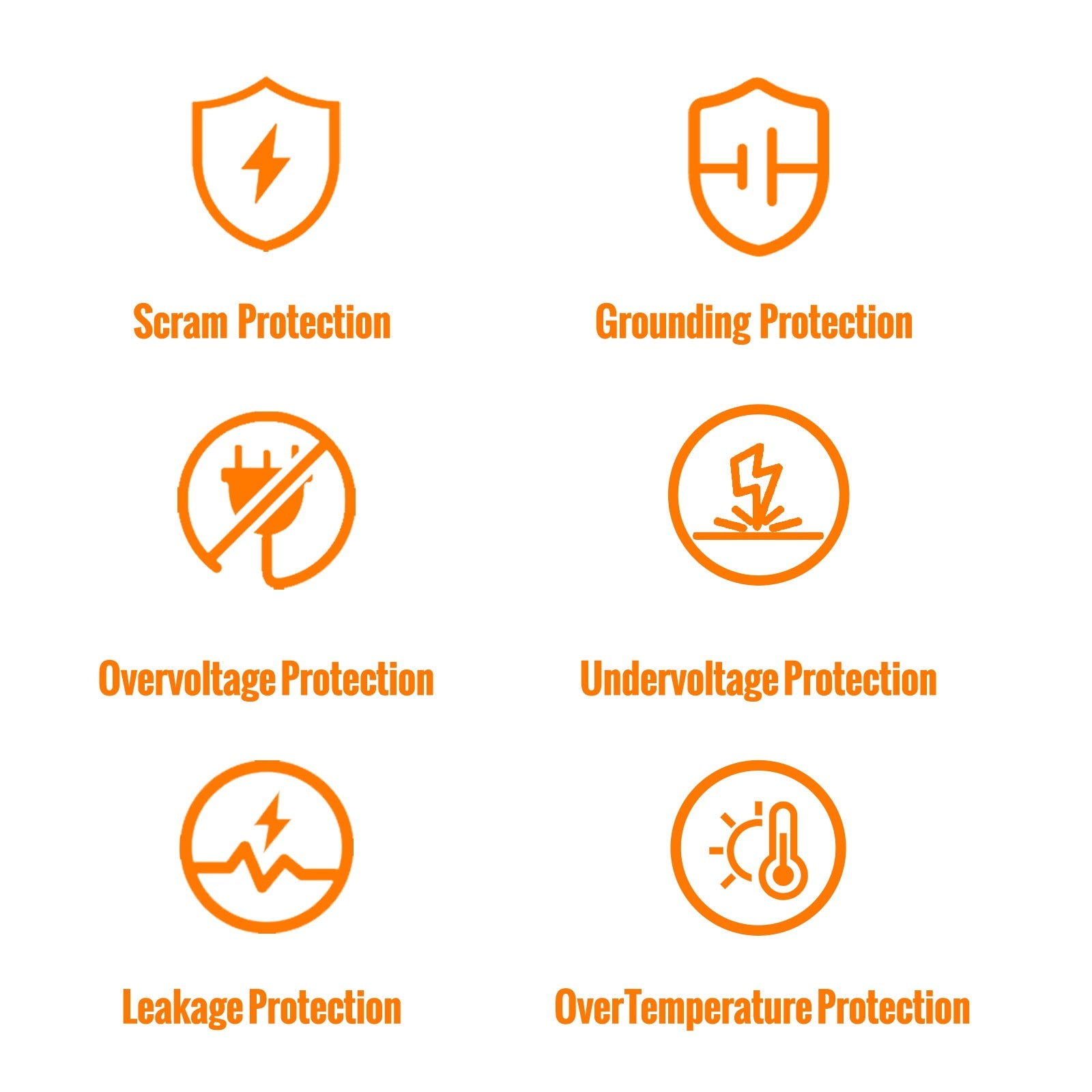 Safety protection: Scram protection, Grounding protection, Leakage protection,Overvoltage protection, Undervoltage protection , etc