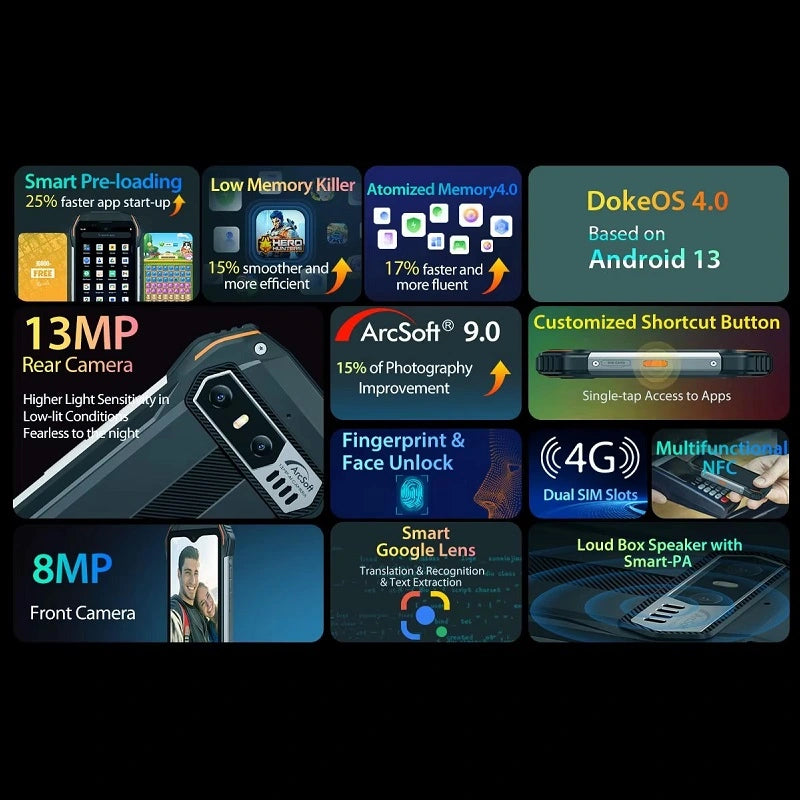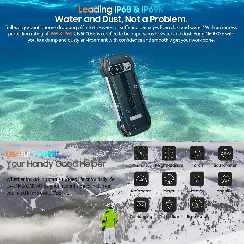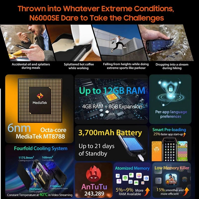 14. Proteção: IP68/IP69K MIL-STD-810H à prova d'água e à prova de poeira À prova de choque